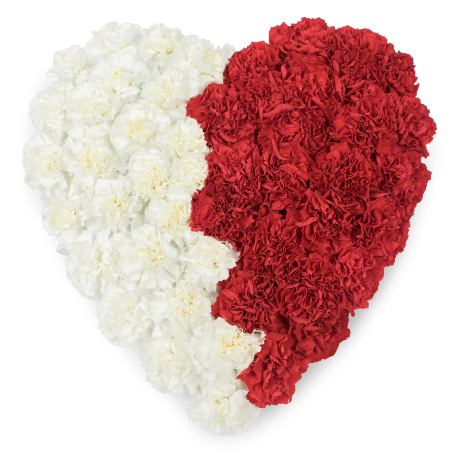 Introducing our enchanting heart-shaped bouquet by Handy Flowers, designed to capture the essence of elegance and emotion. Expertly arranged from pristine white and red carnations, each flower is chosen with utmost care to ensure maximum freshness and beauty. The vibrant color contrast and artistic layout make this bouquet a memorable symbol of love and admiration.