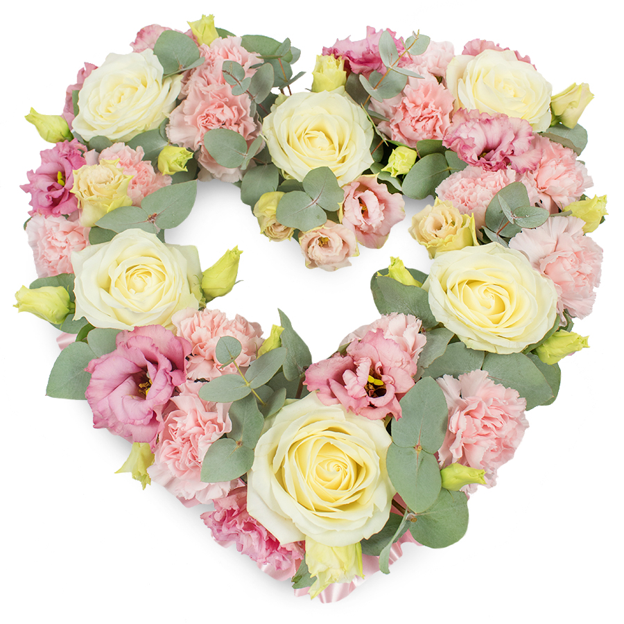 Honor your loved ones with our luxurious open heart floral arrangement. This stunning display combines elegant white roses, vibrant pink carnations, and graceful pink lisianthus, accented with soothing eucalyptus leaves. Each bloom is handpicked for supreme freshness, ensuring a vibrant and lasting tribute.